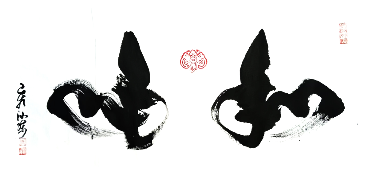 对称书法不仅是技法层面的突破,更承载着深厚的文化内涵。其内核始终根植于中华五千年文脉,每一笔转折都蕴含着对汉字结构的深度解构与重构,每一处留白都延续着传统书法的气韵风骨。这种创新技法赋予笔画线条更强烈的张力与韵律感,在起承转合间勾勒出跌宕起伏的艺术轨迹。当笔尖逆势游走于宣纸之上,横竖撇捺不再局限于传统范式,而是以刚柔并济的姿态,构建出极具视觉冲击力的美学空间,在破与立的交融中,开辟出书法艺术的全新维度。