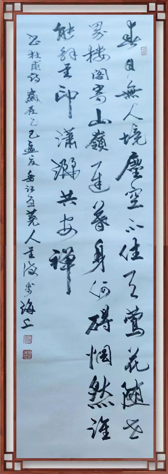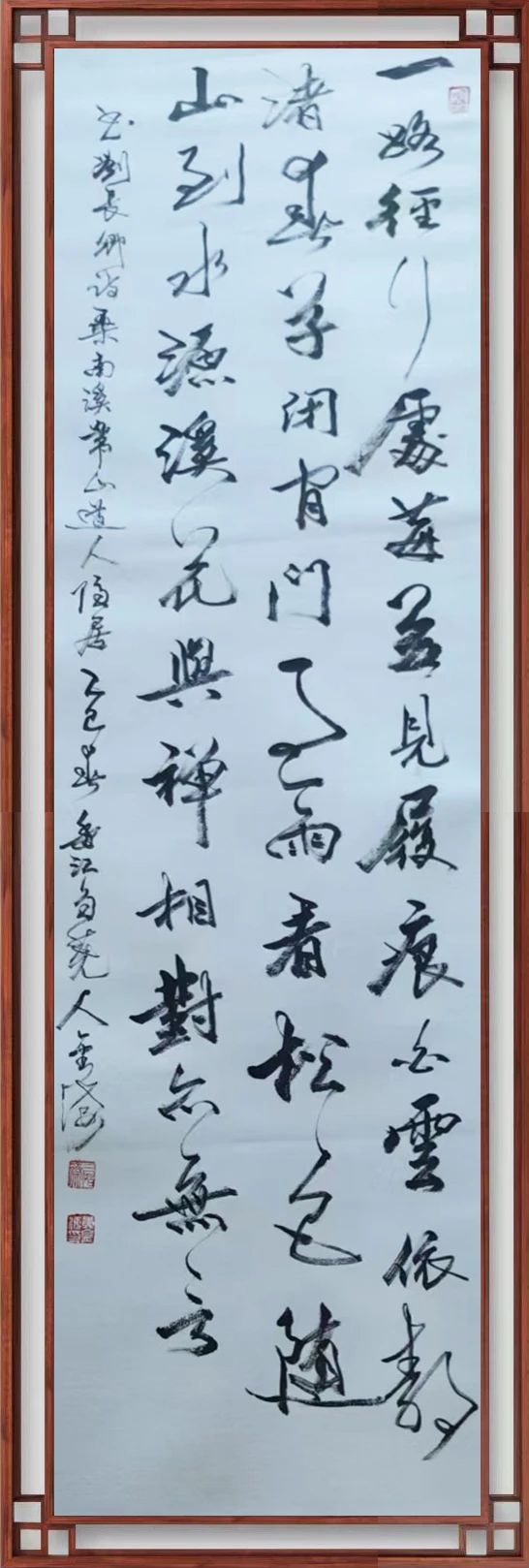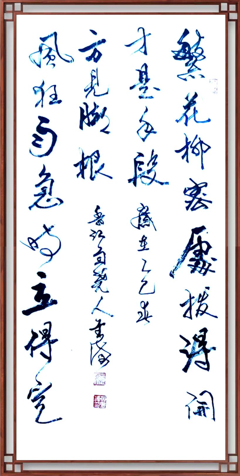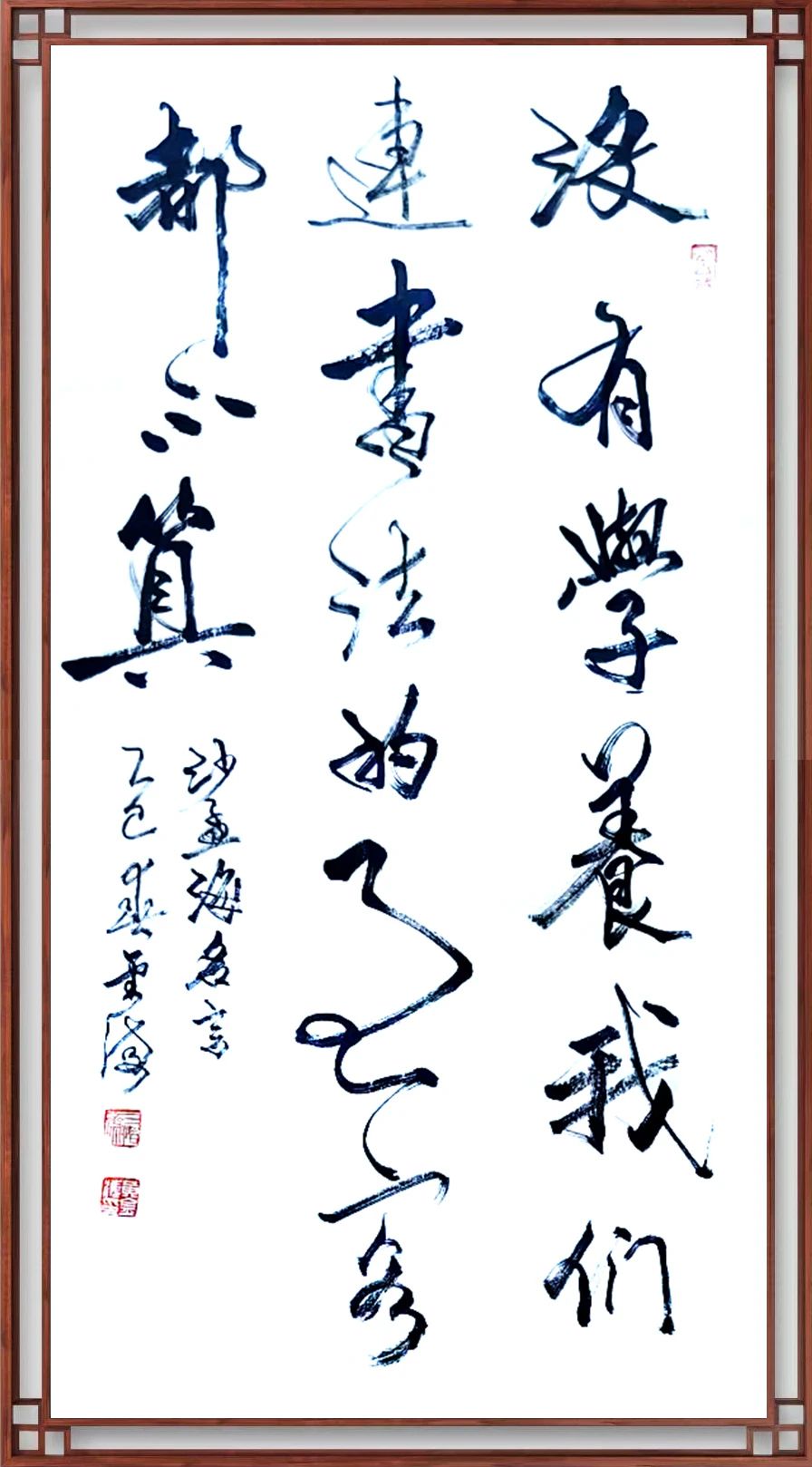 书协主席孙晓云对黄金海书法作品的评点:黄金海作品,观其力而不失,身姿展而不夸,笔迹流水行云,並将所学之法转换到创作中,並且大胆释放性情,大小兼施,疏密並用,呈现出一定节奏旋律,营造了艺术气息,创作理念,难能可贵。