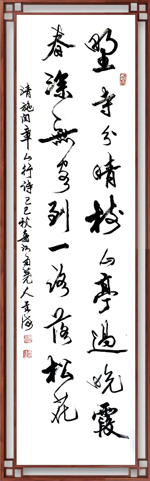 书协主席孙晓云对黄金海书法作品的评点:黄金海作品,观其力而不失,身姿展而不夸,笔迹流水行云,並将所学之法转换到创作中,並且大胆释放性情,大小兼施,疏密並用,呈现出一定节奏旋律,营造了艺术气息,创作理念,难能可贵。
