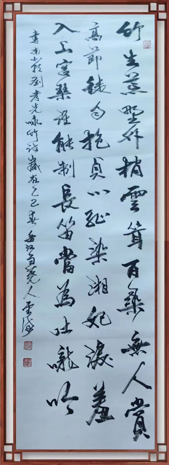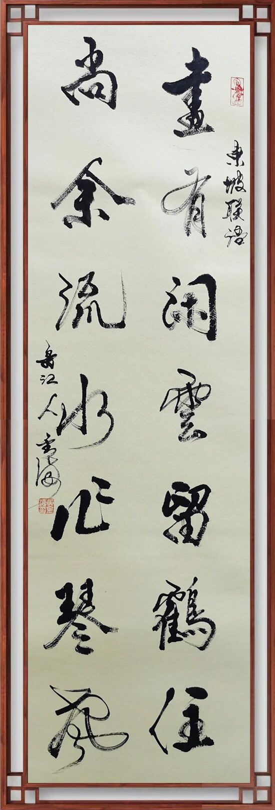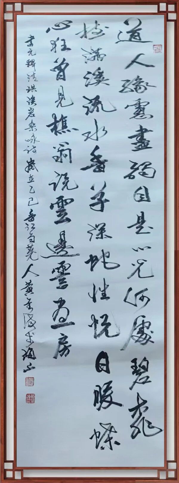 书协主席孙晓云对黄金海书法作品的评点:黄金海作品,观其力而不失,身姿展而不夸,笔迹流水行云,並将所学之法转换到创作中,並且大胆释放性情,大小兼施,疏密並用,呈现出一定节奏旋律,营造了艺术气息,创作理念,难能可贵。